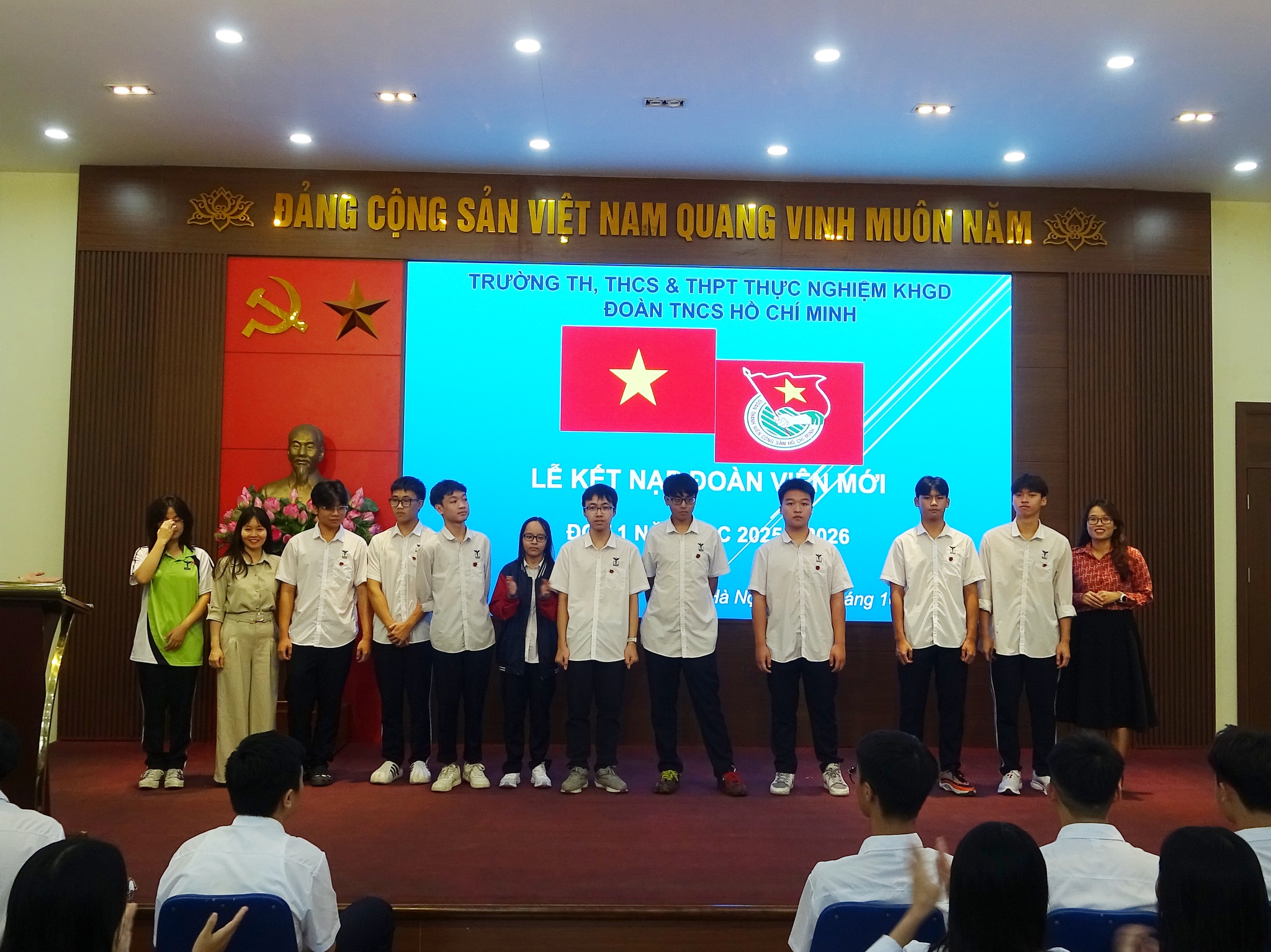 Xin chúc mừng 103 đoàn viên mới – thế hệ thanh niên Thực nghiệm KHGD tiếp bước truyền thống, mang trong mình nhiệt huyết, bản lĩnh và niềm tin của tuổi trẻ. Từ hôm nay, sắc xanh Đoàn sẽ đồng hành cùng các em trên hành trình học tập và rèn luyện, để mỗi ngày đến trường đều là một ngày lớn hơn trong suy nghĩ, vững vàng hơn trong ước mơ và tự hào hơn khi được gọi hai tiếng “Đoàn viên”.