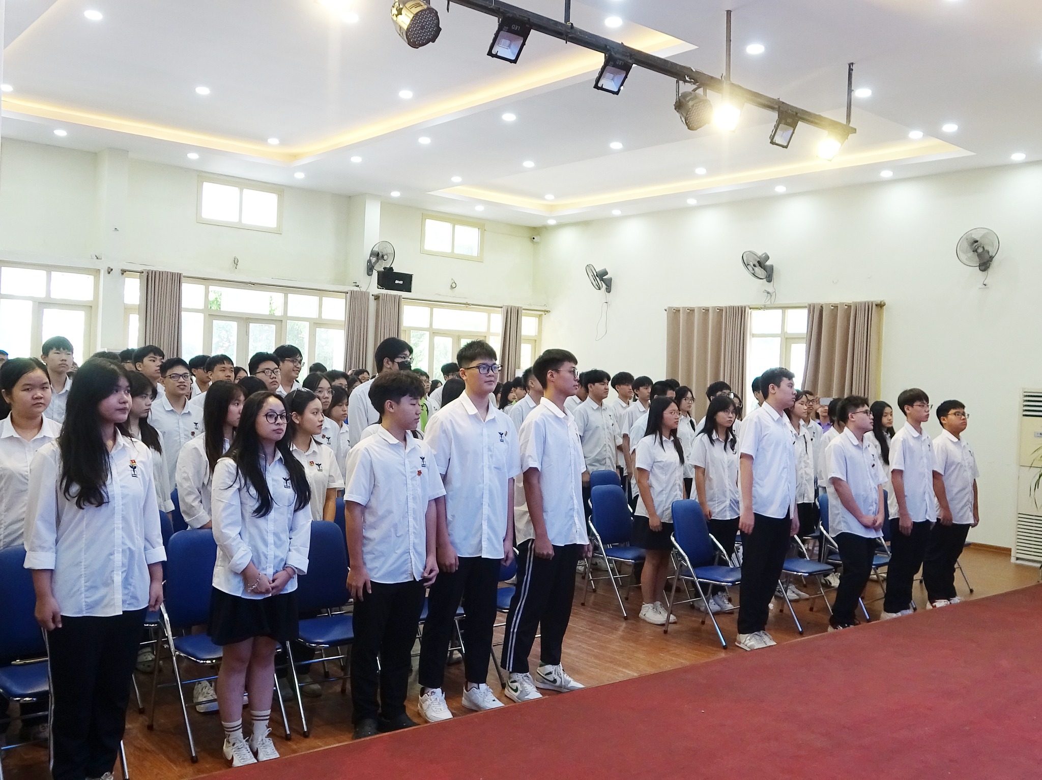 Trong giai điệu Quốc ca và Đoàn ca ngân vang, niềm tự hào hiện rõ trong ánh mắt, trong nụ cười rạng rỡ của những gương mặt tuổi trẻ. Khoảnh khắc được đứng trong hàng ngũ Đoàn là dấu mốc thiêng liêng – nơi mỗi học sinh thêm thấu hiểu ý nghĩa của tinh thần trách nhiệm, của sự gắn bó và khát vọng cống hiến.