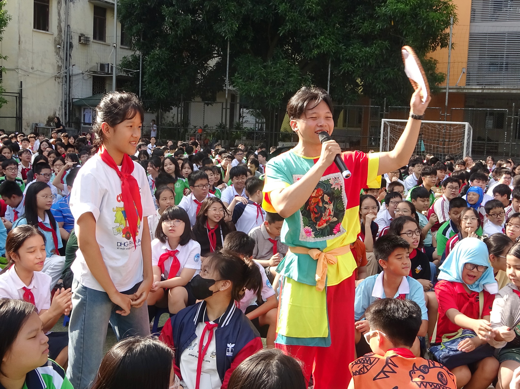 Tiết mục Chú Cuội – chị Hằng mở màn như cánh cửa đưa các em bước vào thế giới cổ tích thân quen. Tiếp nối là những giai điệu rộn ràng, nhịp trống lân dồn dập khiến cả sân trường bừng sáng trong niềm vui hân hoan. Từ những trò chơi dân gian, thi bày mâm cỗ đến những khoảnh khắc tự tay làm đèn lồng, tô vẽ mặt nạ… tất cả hòa quyện thành bản giao hưởng tuổi thơ đầy sắc màu và tiếng cười.