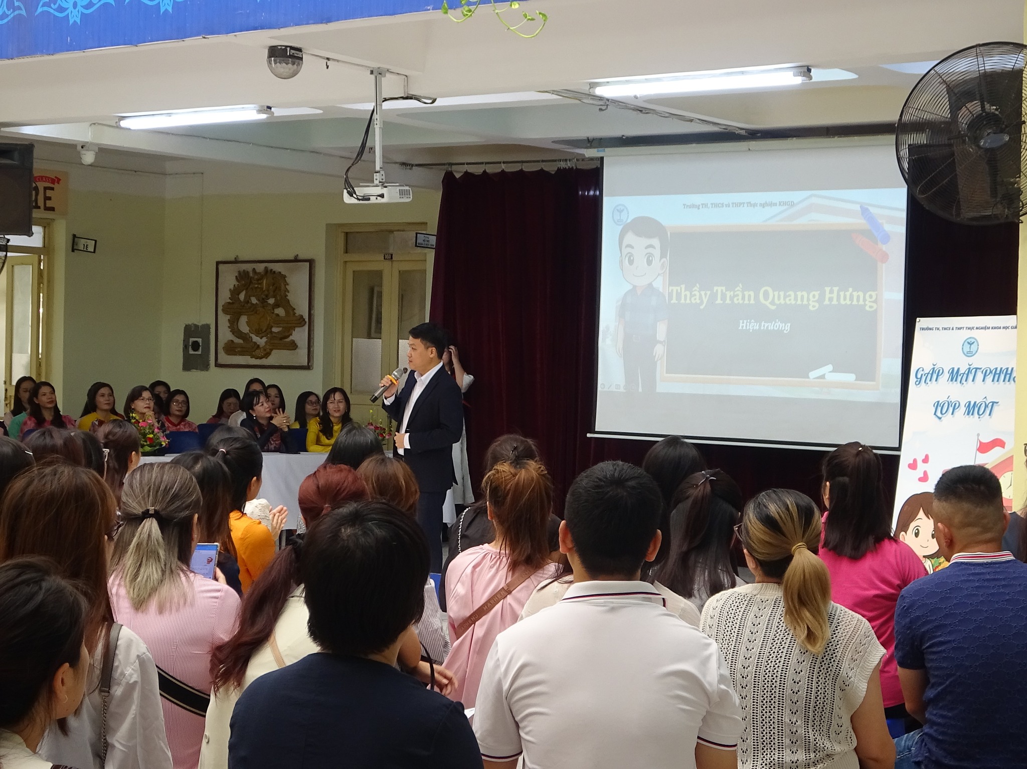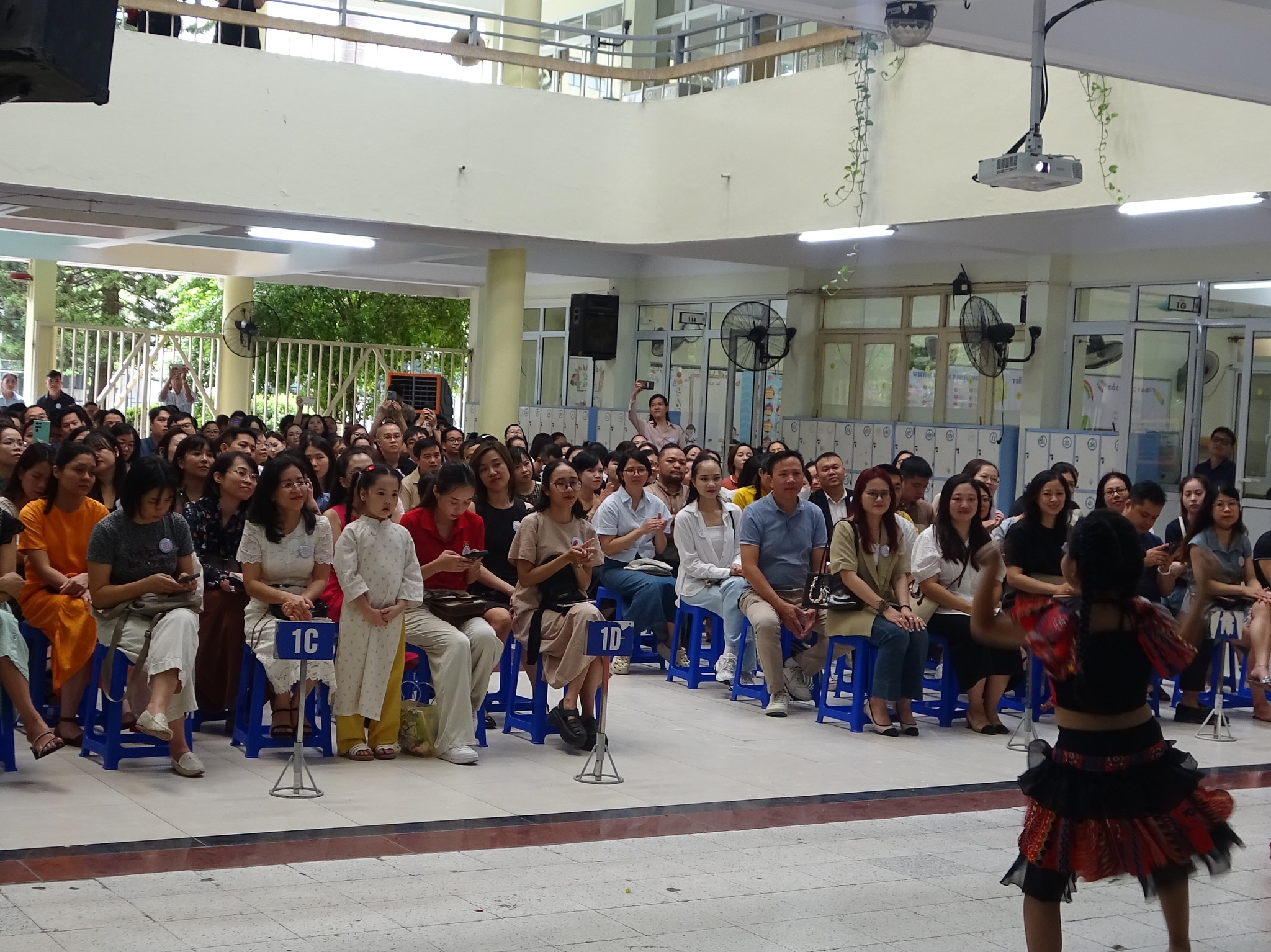 Ở khối 1, phụ huynh được chào đón tại sảnh tầng 1 Tiểu học, các huy hiệu lớp được trao cho phụ huynh như lời chào trang trọng từ nhà trường. Những chia sẻ từ Ban Giám hiệu, sự tận tâm của các thầy cô chủ nhiệm cùng phần giải đáp từng thắc mắc đã mang lại sự thấu hiểu sâu sắc. Khoảnh khắc các em lớp 2, lớp 3 cất tiếng hát, những điệu múa như tiếp thêm niềm tin cho những “tân binh” lớp 1 trong hành trình bắt đầu.