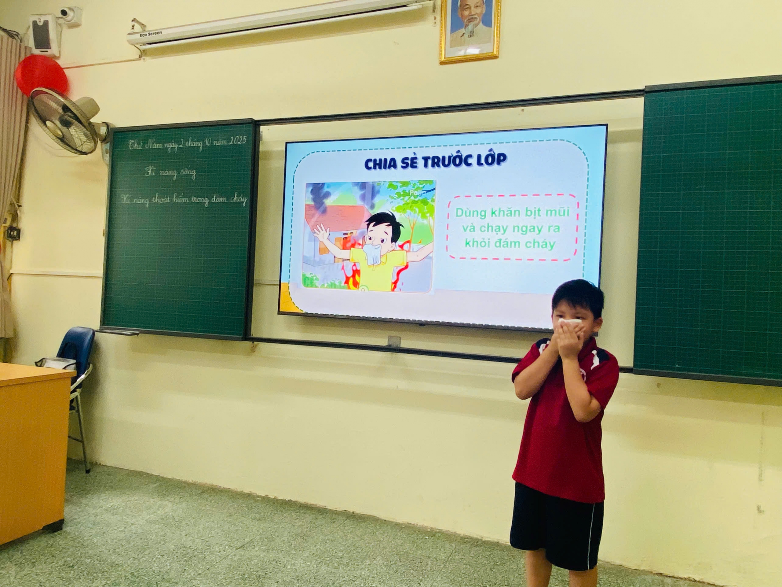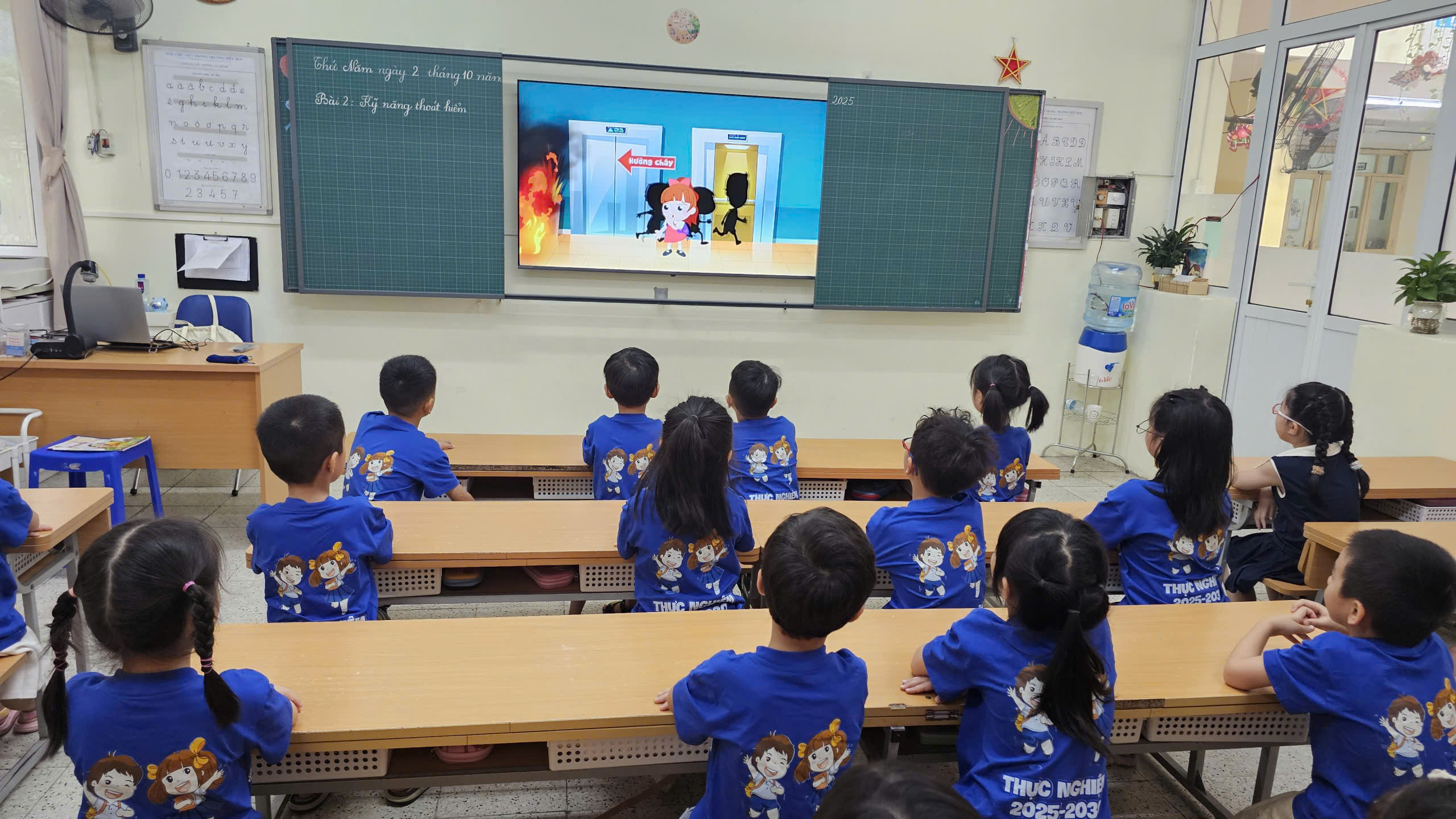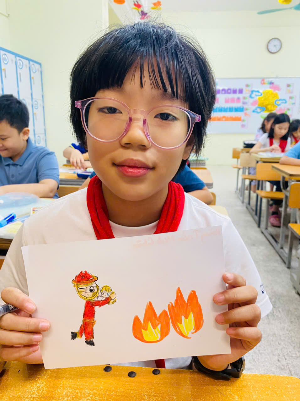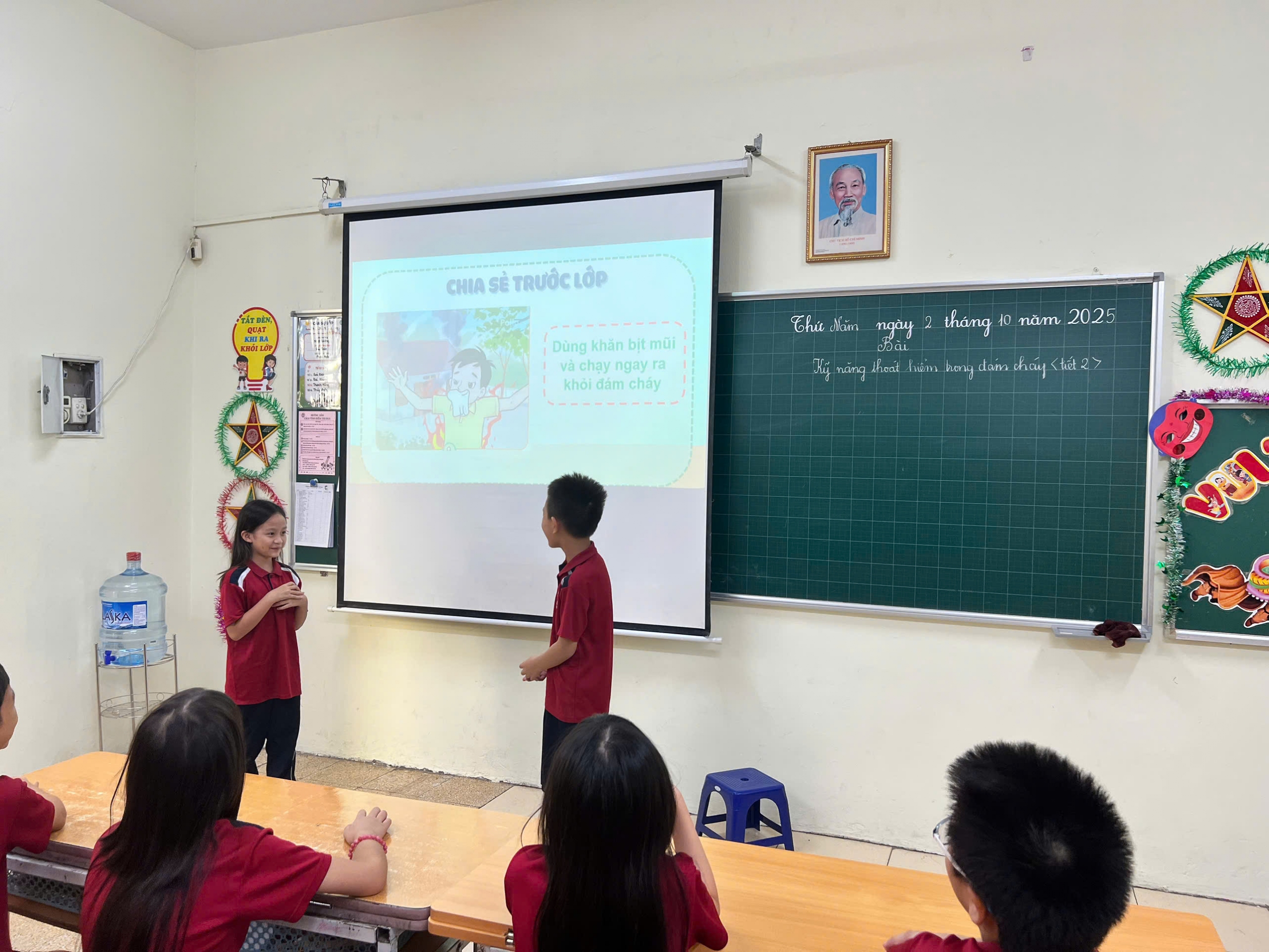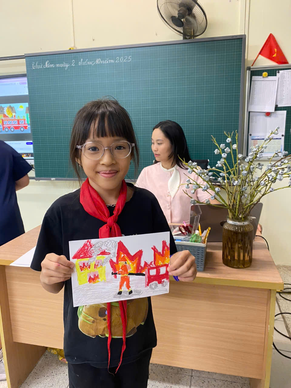 Trong các tiết Kĩ năng sống, các em đã được xem clip hướng dẫn “Kỹ năng thoát nạn cho trẻ trong đám cháy”, từ đó thực hành nhận biết nguy cơ và lựa chọn hướng di chuyển an toàn. Cùng với đó, hoạt động vẽ tranh cổ động hưởng ứng Ngày Toàn dân PCCC và trưng bày sản phẩm tại bảng tin được triển khai theo tinh thần công văn hướng dẫn.