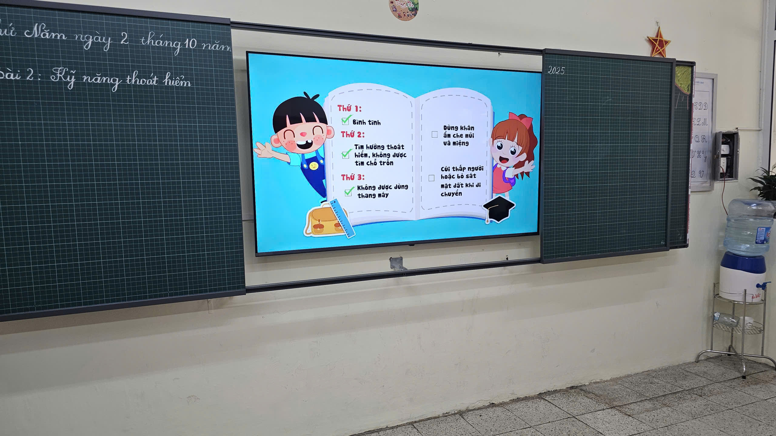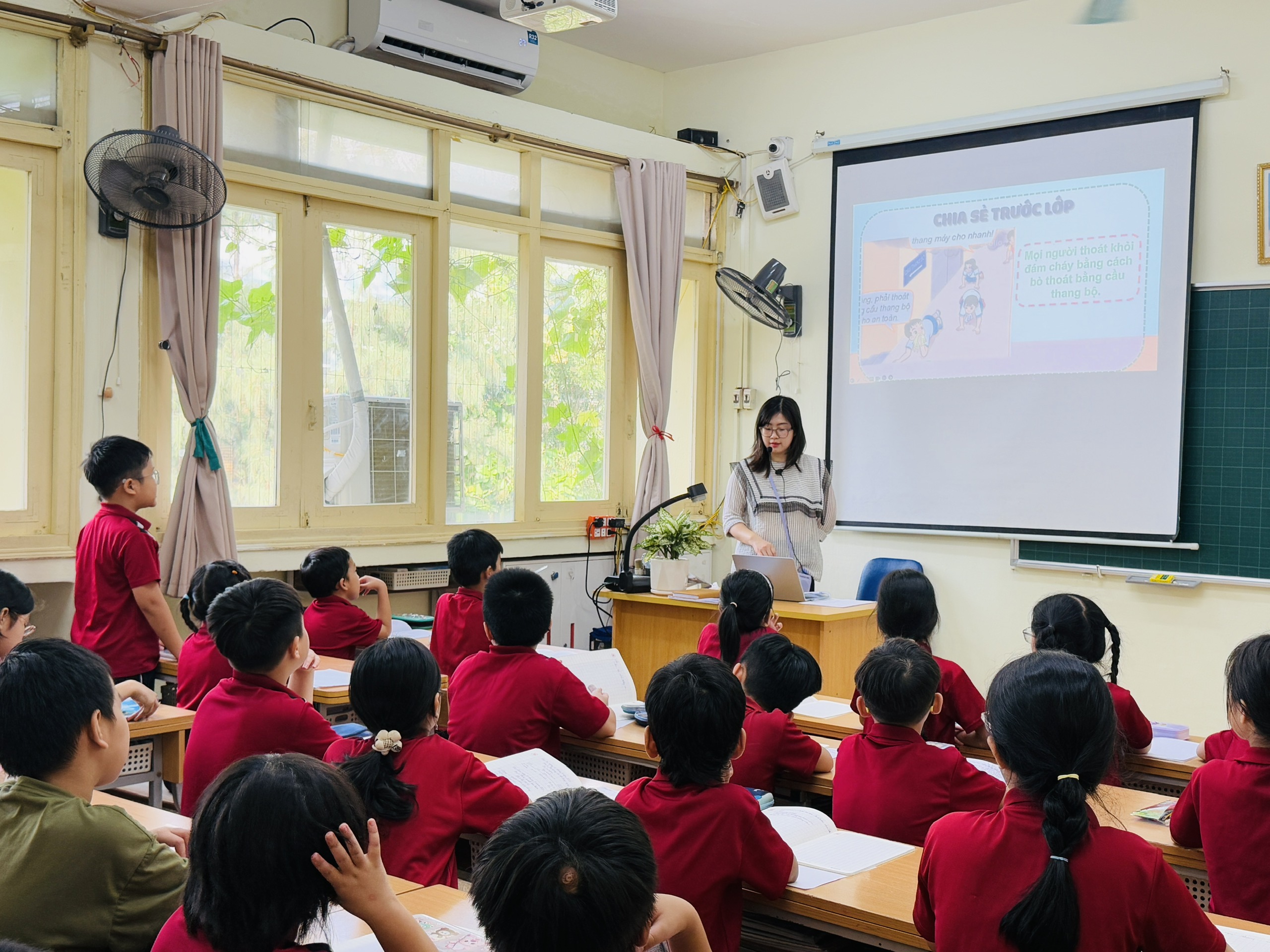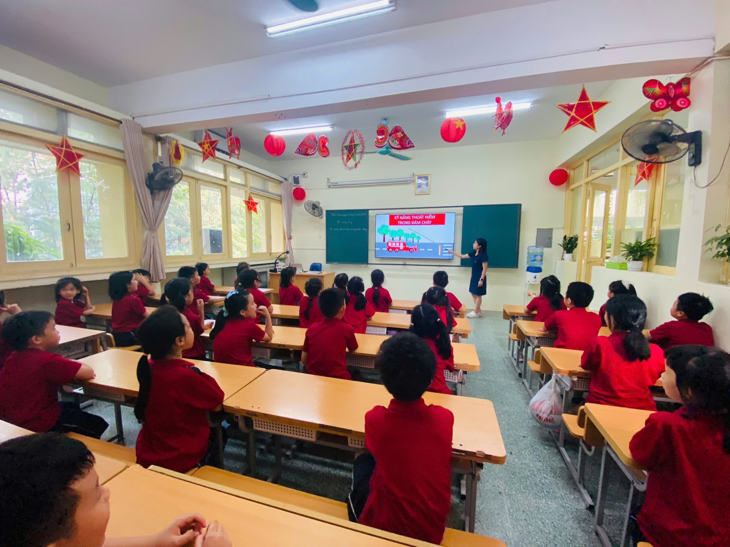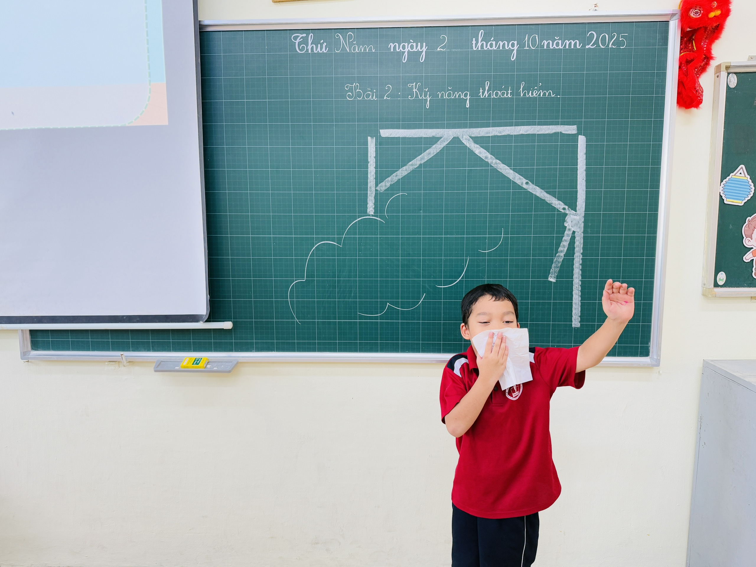 Trong các tiết Kĩ năng sống, các em đã được xem clip hướng dẫn “Kỹ năng thoát nạn cho trẻ trong đám cháy”, từ đó thực hành nhận biết nguy cơ và lựa chọn hướng di chuyển an toàn. Cùng với đó, hoạt động vẽ tranh cổ động hưởng ứng Ngày Toàn dân PCCC và trưng bày sản phẩm tại bảng tin được triển khai theo tinh thần công văn hướng dẫn.