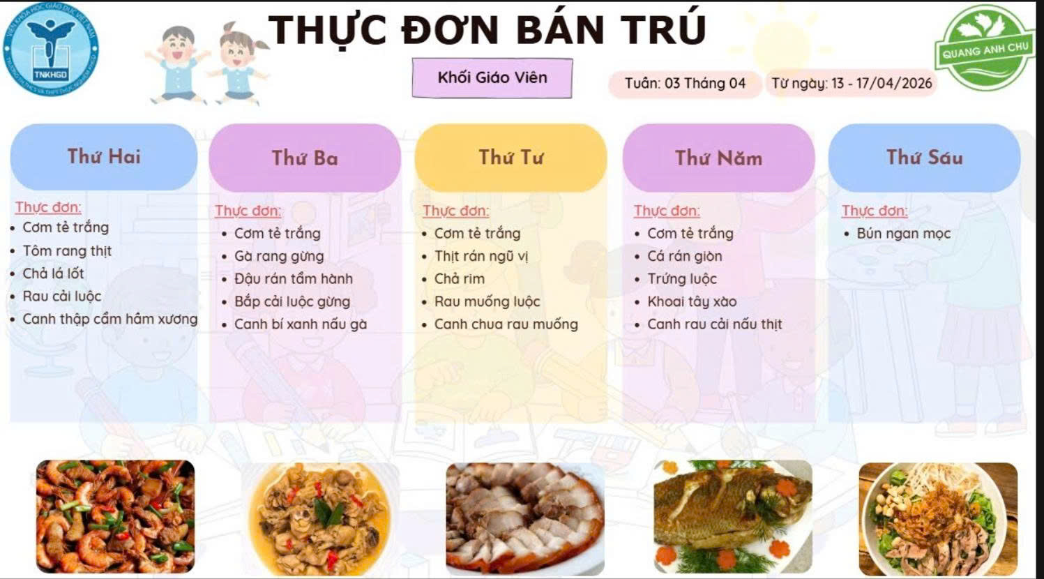 Thực đơn chính thức năm học 2025–2026